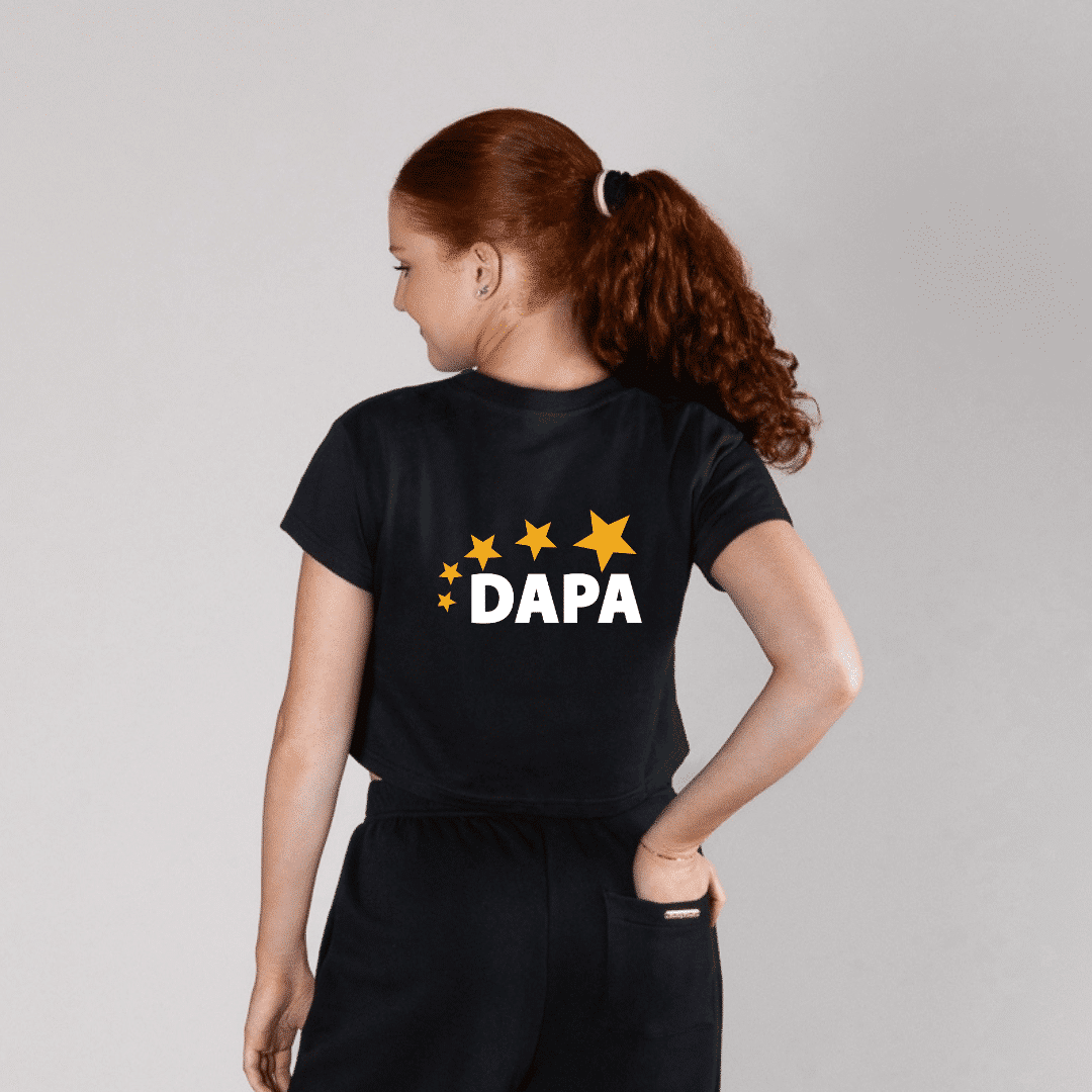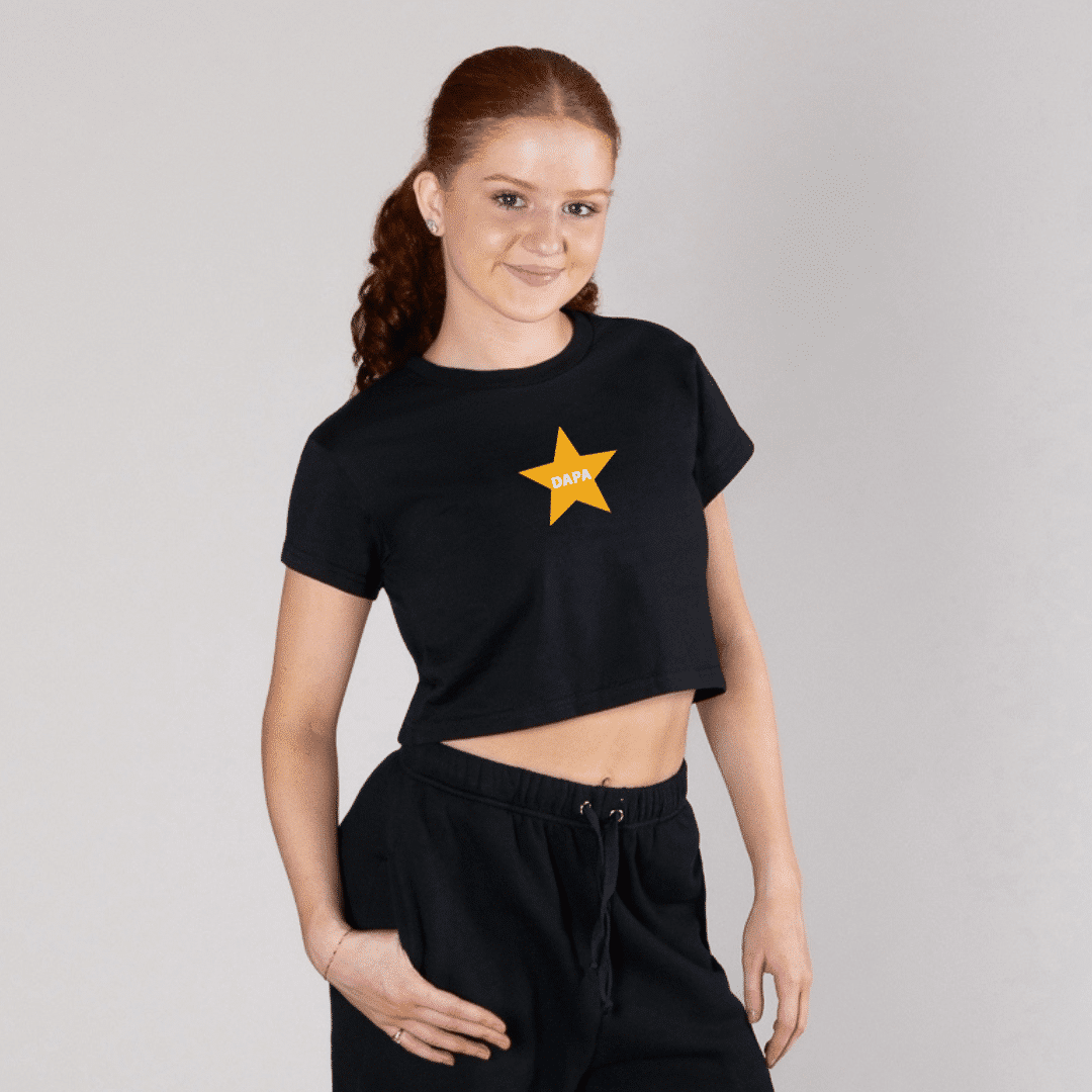 The DAPA Crop Tee is a basic relaxed crop fit round neck top ideal for dancers of all ages. A oversized boxy style made with breathable Cotton keeping you cool as you move. The DAPA logo printed on the front and back.